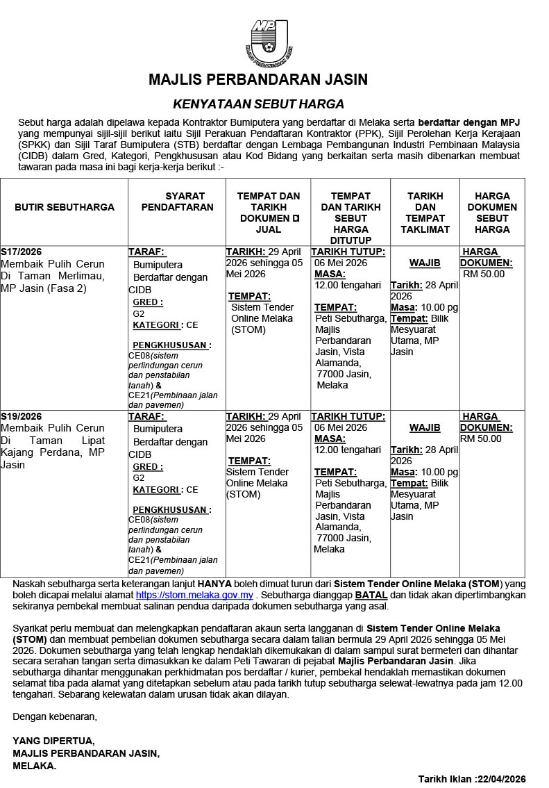 S17/2026 Membaik Pulih Cerun Di Taman Merlimau, MP Jasin (Fasa 2)